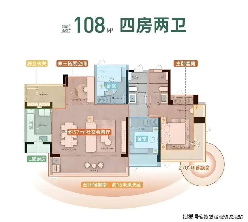 对于追求更高生活品质的改善型家庭,星河盛世禧悦的一百零八平方米四房两卫户型,无疑是最佳选择。这个户型主打极致的居住体验,将空间美学与功能实用性完美融合。五开间朝南的豪华布局,在市场上极为罕见。这意味着,客厅和四个卧室全部面向南方,全天候沐浴在温暖的阳光下。这种设计,不仅提升了室内的采光效果,更有利于身体健康和心情愉悦。超六米的跑道式阳台,横跨客厅和次卧,气势恢宏,视野开阔。站在阳台上,远处的山景、近处的园景尽收眼底,让人心旷神怡。客厅采用了流行的横厅布局,面宽极大,进深适中。这种设计让客厅显得异常宽敞大气,适合举办家庭聚会或朋友派对。实测显示,正午时分,室内无需开灯,自然光线足以照亮每一个角落。双套房设计是该户型的一大杀手锏。主卧和次卧均配备了独立卫生间,满足了三代同堂的居住需求。老人住在次卧套房,年轻人住在主卧套房,既方便照顾,又互不打扰,充分保障了各代人的私密性。这种设计,完美解决了多代同居生活中的痛点,让家庭关系更加和谐融洽。