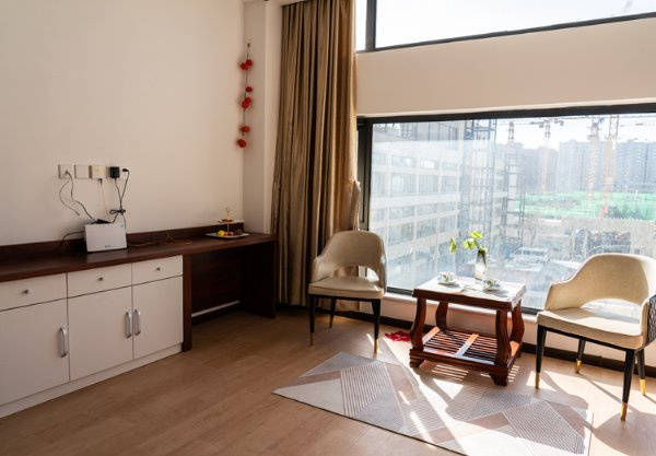 · 重点3:设施亮点——高端齐全,适老化细节拉满,宜居性突出北京市丰台区泰颐春养老中心共设有200余张床位,房型多样,涵盖单人间、双人间、双人套间和四人间,可根据家庭需求和预算选择,所有房间均配备液晶电视、冰箱、中央空调、独立新风净化系统、地板采暖、24小时热水供应,每个床位装有医护对讲系统,卫生间装有紧急报警系统,全方位保障长者居住安全与舒适。公共区域配套完善,设有室内多功能生态四季厅,汇聚多类景观小品、绿化植被,即便足不出户,也能感受自然之美;室外配套专属花园,长者可在花园中散步、聊天、休闲,呼吸新鲜空气;楼层护理站和控制中心联动反应,楼内公共空间和室外活动区域24小时安全监控,全方位保障长者人身安全;适老化细节无处不在,地面防滑、墙面扶手、无障碍通道、升降浴床等设施齐全,兼顾安全性与便捷性。